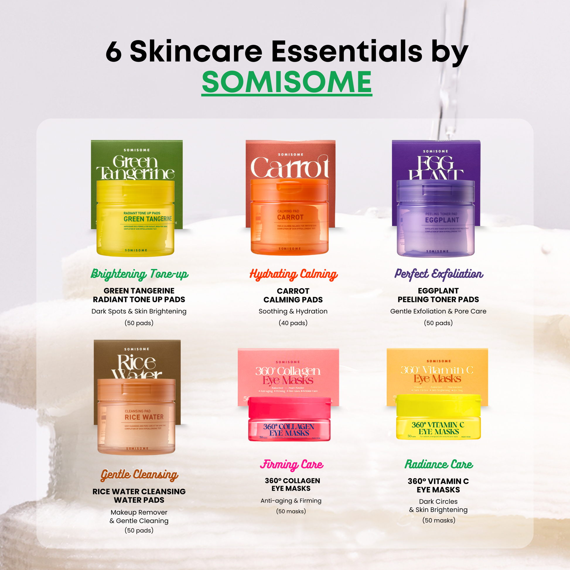 SOMISOME is Korea’s No.1 cotton pad brand with over 30 years of expertise. Our products are crafted with high-quality, locally sourced Korean ingredients, formulated to be gentle yet effective for even the most sensitive skin. Loved throughout Korea and certified vegan, SOMISOME delivers clean, conscious skincare with a touch of nature.